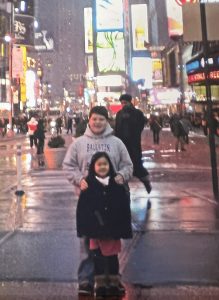 Ethan, 12, and Grace, 7, in Times Square, New York City.